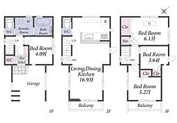 ご家族の顔が見渡せる対面式キッチン採用。カースペース付き新築戸建てです。