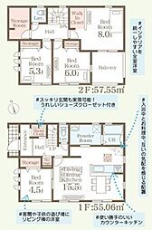 | 間取り | 4LDK 間取り内訳:リビングダイニングキッチン 15.6帖(1階)・和室 7畳(1階)・洋室 8.5帖(2階)・洋室 6帖(2階)x2 |