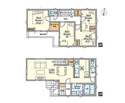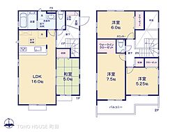 | 間取り | 3LDK(パントリー、小屋根裏収納庫、シューズインクローゼット、リネン棚) 間取り内訳:リビングダイニングキッチン 16帖(1階)・洋室 8.1帖(2階)・洋室 6帖(2階)・洋室 5.2帖(2階) |