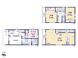 | 間取り | 2SLDK 間取り内訳:収納 5帖(1階)・リビングダイニングキッチン 18.2帖(2階)・洋室 6.4帖(3階)・洋室 6帖(3階) |