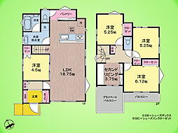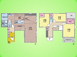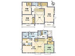 | 間取り | 3LDK 間取り内訳:リビングダイニングキッチン 16.4帖(1階)・洋室 5.2帖(2階)・洋室 5.5帖(2階)・洋室 7.5帖(2階) |