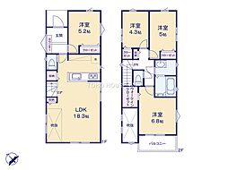 | 間取り | 3LDK 間取り内訳:リビングダイニングキッチン 17.9帖(1階)・洋室 6帖(2階)x2・洋室 7帖(2階) |