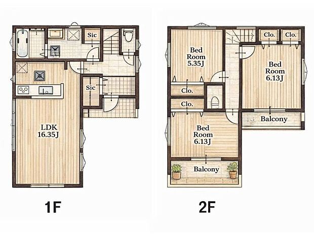 間取り 3LDK 建物階 木造 2階建