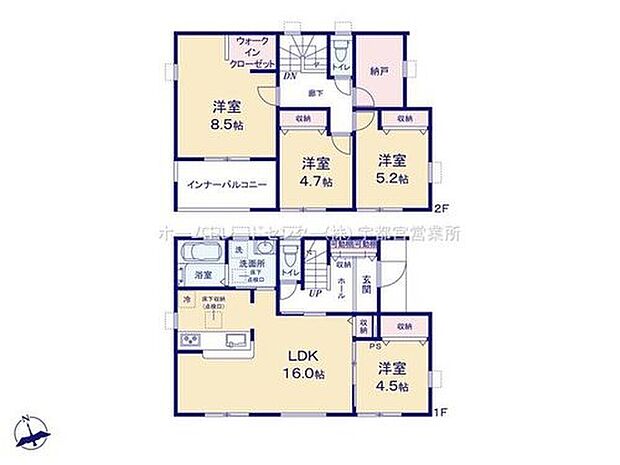 間取り 4LDK+S(納戸) 建物階 木造2階建(軸組工法)