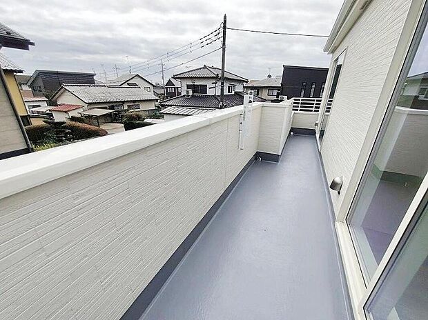 • 【バルコニー】この物件の魅力の一つです。南面にあるバルコニーはもちろん日当たり良好、だからこそ広くとり、洗濯物を干しやすくするとともに、日光浴にも遊び場にも使える空間を確保いたしました。