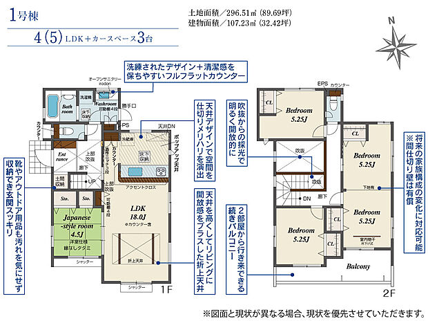 | 建物面積 | 100.40m2(約30.37坪)~107.23m2(約32.43坪) | ||