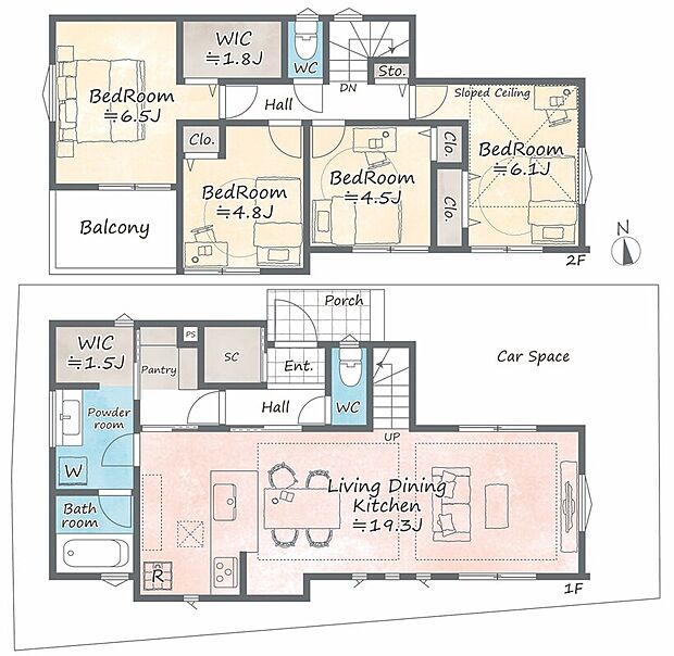 ※乾太くん標準仕様!※大型4LDK(LDK約19.3帖)!SIC/WIC等収納多数!! ~PLAN内容~ ・建物面積 100m2超 ・4LDK(LDK 約19.3帖) ・シューズインクローゼット ・ウォークインクローゼット ~住宅設備~ ・システムキッチン Panasonic【ラクシーナ】採用 ・ガス式床暖房採用 ・ガス式衣類乾燥機 【乾太くん】標準設置