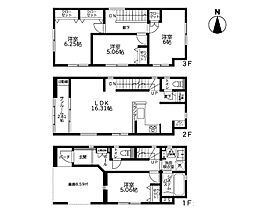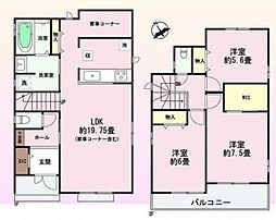 | 間取り | 3SLDK(LDK18.75帖 建物面積1階:61.27m2 2階:50.51m2) 間取り内訳:洋室 8帖(2階)・洋室 6帖(2階)x2・リビングダイニングキッチン 18.7帖(1階) |
