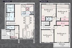 | 間取り | 4LDK 間取り内訳:洋室 7帖(2階)・洋室 6.1帖(2階)・洋室 5.2帖(2階)・洋室 4.7帖(2階)・リビングダイニングキッチン 20帖(1階) |