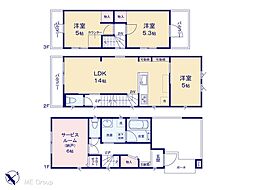 間取り内訳:リビングダイニングキッチン 14帖・洋室 5帖・洋室 5帖・洋室 5.3帖・収納 6帖