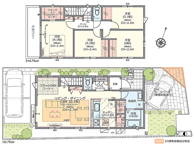 | 間取り | 3LDK+パントリー+リネン庫+クロゼット+ファミリークロゼット+2ウォークインクロゼットコーナー ~ 4LDK+スキップDEN+土間収納+パントリー+ウォークインクロゼットコーナー | 建物階 | 木造2階建(2×4工法) |