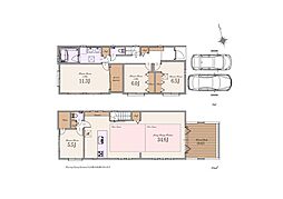 | 建物面積 | 148.06m2(車庫面積11.44m2含む) | ||