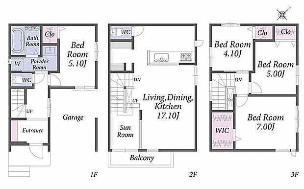 間取り 4LDK 建物階 木造、地上3階建て