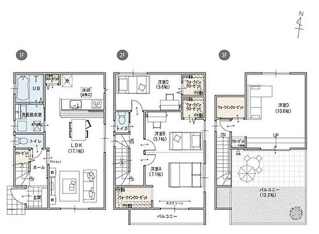 間取り 4LDK・5LDK 建物階 木造3階建て(2×4工法)