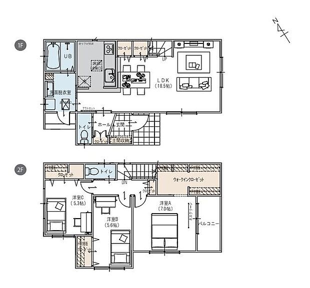 間取り 3LDK 建物階 木造2階建て(2×4工法)