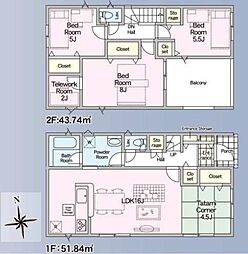| 間取り | 4SLDK 間取り内訳:リビングダイニングキッチン 16帖(1階)・和室 4.5畳(1階)・洋室 8帖(2階)・洋室 6帖(2階)・洋室 5.5帖(2階) |