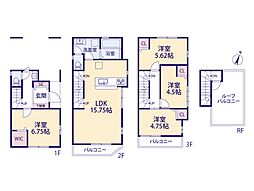• LDKは15帖超!リビングイン階段採用!各居室収納を完備!ガーデニングやBBQが楽しめる広々とした屋上をご用意!