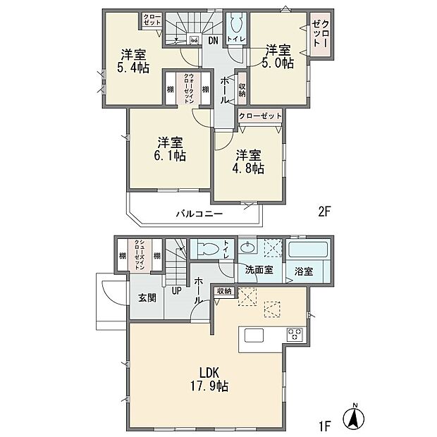 | 間取り | 4LDK 間取り内訳:リビングダイニングキッチン 17.9帖・洋室 5.4帖・洋室 5帖・洋室 6.1帖・洋室 4.8帖 |