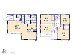 | 間取り | 3LDK 間取り内訳:リビングダイニングキッチン 23.3帖(1階)・洋室 5.3帖(2階)・洋室 6帖(2階)・洋室 7.1帖(2階) |