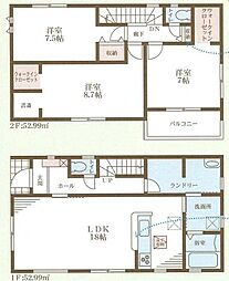 | 間取り | 3LDK 間取り内訳:洋室 8.7帖・洋室 7.5帖・洋室 7帖・リビングダイニングキッチン 18帖 |
