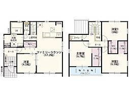 間取り内訳:リビングダイニングキッチン 17帖(1階)・洋室 4.8帖(1階)・洋室 8.8帖(2階)・洋室 7.5帖(2階)・洋室 5.5帖(2階)・収納(2階)