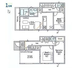 | 間取り | 2SLDK(階段下収納) 間取り内訳:リビングダイニングキッチン 13帖(2階)・洋室 5帖(2階)・洋室 6帖(1階)・収納 6帖(1階) |