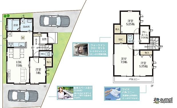 • 「建築条件付き土地」の「建物プラン例」は、土地購入者の設計プランの一例であり、プランの採用可否は任意です。