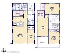 | 間取り | 4LDK 間取り内訳:リビングダイニングキッチン 18帖(1階)・洋室 6.5帖(2階)x2・洋室 5.8帖(2階)・洋室 5.3帖(2階) |