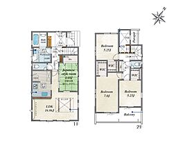 | 間取り | 3LDK 間取り内訳:リビングダイニングキッチン 17.5帖(1階)・洋室 5.2帖(2階)・洋室 5.3帖(2階)・洋室 8.6帖(2階) |