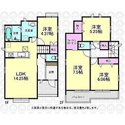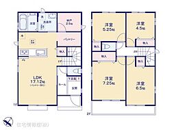 | 間取り | 4LDK 間取り内訳:リビングダイニングキッチン 20.5帖(1階)・その他 2.2帖(1階)・洋室 6.7帖(2階)・洋室 5.2帖(2階)・洋室 4.5帖(2階)x2 |