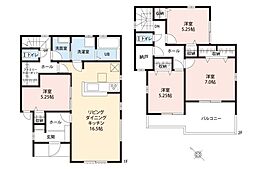 間取り内訳:リビングダイニングキッチン 16.5帖(1階)・洋室 3.8帖(1階)・洋室 7.7帖(2階)・洋室 5.3帖(2階)x2・収納(2階)