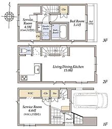 | 間取り | 2SLDK 間取り内訳:収納 4.5帖(1階)・リビングダイニングキッチン 16.3帖(2階)・洋室 7.1帖(3階)・洋室 6帖(3階) |