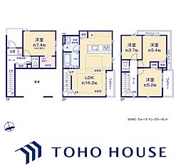 | 間取り | 4LDK 間取り内訳:リビングダイニングキッチン 16.2帖(2階)・洋室 7.4帖(1階)・洋室 5.4帖(3階)・洋室 5.2帖(3階)・洋室 3.7帖(3階) |