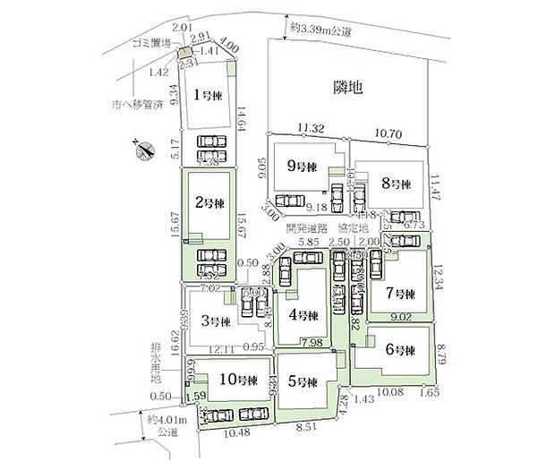 | 土地面積 | 105.15m2~130.15m2<私道負担面積246.95m2 私道負担割合1/10> | ||
