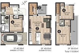 • 【3LDK】暮らしの中心となるLDKは18.2帖を確保、リビング続きにワイドバルコニーを配する事で一体感を演出、繋がりある空間は開放感を演出します。メインベットルームを8.1帖のする事でご夫婦の時間を大切に考えました。ウォークインクローゼットには大容量の荷物や衣類を収納出来ます。3階にもワイドバルコニーを配しておりますので、様々なシーンでご活用いただける設計となっております。