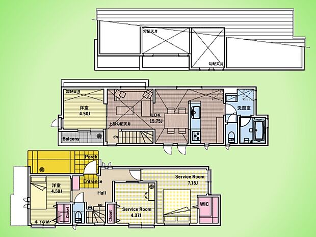 駐車スペース2台可(車種による) 完成済みにつき内覧・即時引渡し可能 居室としても使える広さのサービスルームあり 主寝室にはウォークインクローゼット付き 都市ガス