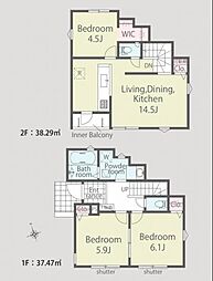 | 間取り | 4LDK 間取り内訳:リビングダイニングキッチン 20.7帖(1階)・洋室 8.2帖(2階)・洋室 5.2帖(2階)x3 |
