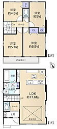 | 間取り | 4LDK 間取り内訳:リビングダイニングキッチン 19.5帖(1階)・洋室 9.8帖(2階)・洋室 5.2帖(2階)・洋室 5.2帖(2階)・洋室 4.5帖(2階) |