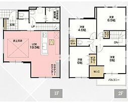 | 間取り | 4LDK 間取り内訳:リビングダイニングキッチン 19.5帖(1階)・洋室 8帖(2階)・洋室 6.5帖(2階)・洋室 6帖(2階)・洋室 4.6帖(2階) |