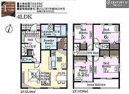 間取り内訳:リビングダイニングキッチン 16帖(1階)・洋室 5.2帖(1階)・洋室 8.3帖(2階)・洋室 6帖(2階)・洋室 5.7帖(2階)