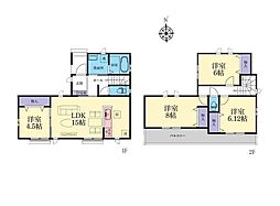 | 間取り | 4LDK 間取り内訳:リビングダイニングキッチン 15帖(1階)・洋室 8帖(2階)・洋室 6.1帖(2階)・洋室 6帖(2階)・洋室 4.5帖(1階) |