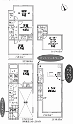 | 間取り | 4LDK 間取り内訳:リビングダイニングキッチン 18帖(1階)・洋室 6.5帖(2階)・洋室 6帖(2階)・洋室 5.2帖(2階)x2 |