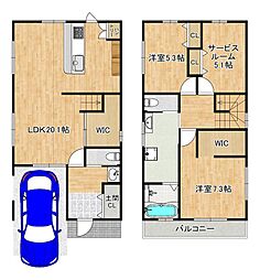 | 間取り | 2SLDK 間取り内訳:リビングダイニングキッチン 20.1帖(1階)・洋室 5.3帖(2階)・洋室 7.3帖(2階)・収納 5.1帖(2階) |
