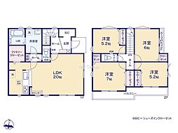 | 間取り | 4LDK 間取り内訳:リビングダイニングキッチン 18帖(1階)・洋室 7.1帖(2階)・洋室 5.3帖(2階)x2・洋室 5.2帖(2階) |