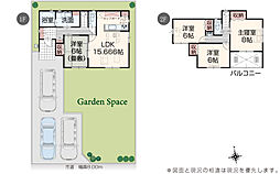 | 間取り | 5LDK 間取り内訳:リビングダイニングキッチン 17帖(1階)・洋室 5帖(1階)・洋室 7.9帖(2階)・洋室 5.7帖(2階)・洋室 5.7帖(2階)・洋室 5.2帖(2階) |