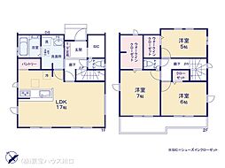 間取り内訳:リビングダイニングキッチン 17帖(1階)・洋室 7帖(2階)・洋室 6帖(2階)・洋室 5帖(2階)