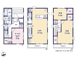 間取り内訳:収納 6帖(1階)・リビングダイニングキッチン 19.5帖(2階)・洋室 10.5帖(3階)・洋室 5.2帖(3階)