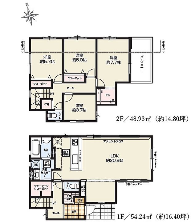 | 間取り | 4LDK(収納多数で使いやすい間取です) 間取り内訳:リビングダイニングキッチン 20.9帖・洋室 7.7帖・洋室 5.7帖・洋室 5帖・洋室 3.7帖 |