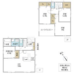 | 間取り | 4LDK 間取り内訳:リビングダイニングキッチン 15.3帖(1階)・洋室 5.7帖(1階)・洋室 6.1帖(2階)・洋室 6.2帖(2階)・洋室 7帖(2階) |