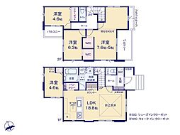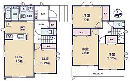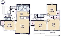 間取り内訳:リビングダイニングキッチン 15帖(1階)・洋室 4.5帖(1階)・洋室 7.5帖(2階)・洋室 6帖(2階)x2